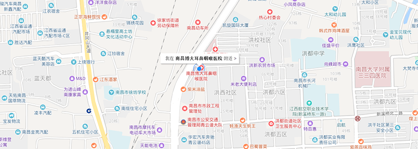 联系我们 您的位置: 主页 > 联系我们 科室电话 门诊电话:0791-86658908 急诊电话:0791-86658908 联系方式 0791-86658908 地址:南昌市洪都南大道237号(九州高架下桥口) 传真:0791-86658908 网址:http://www.ncebhbd.com/ 电子地图